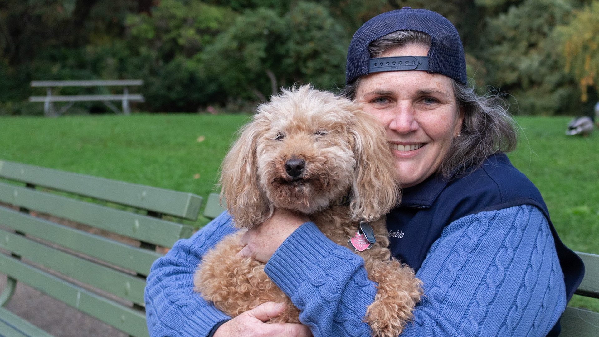 Meet Ted, a cuddly 14-year-old golden doodle mini, and his mom, Kathryn. During the photoshoot, sweet Ted enjoyed romping through the leaves, giving the ducks a bit of a fright, and meeting other pups.